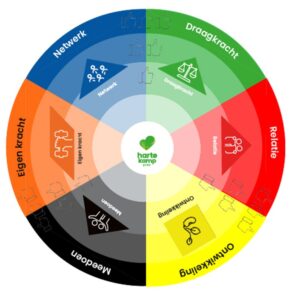 De bouwstenen vormen samen de Cirkel van Versterken. Met de Cirkel van Versterken kan je aan de hand van de bouwstenen per onderwerp bespreken hoe de bouwstenen ervoor staan. Samen bekijken we dan waar we aan kunnen en willen werken.