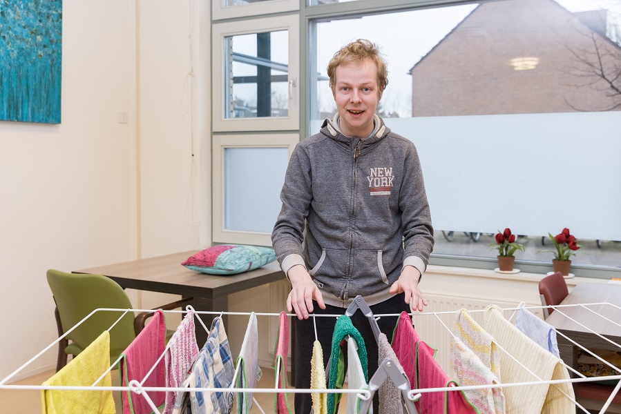 Cliënt hangt de was op tijdens dagbesteding