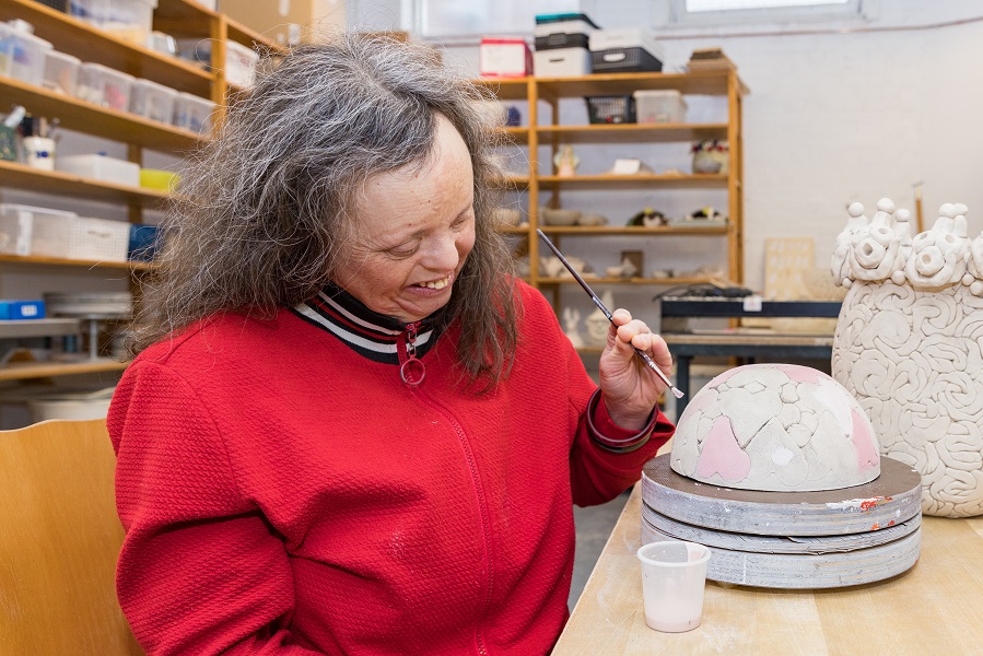 - Hier zijn drie ateliers: de houtwerkplaats, de keramiekatelier en schilderatelier. De producten die cliënten maken worden verkocht in de winkel;